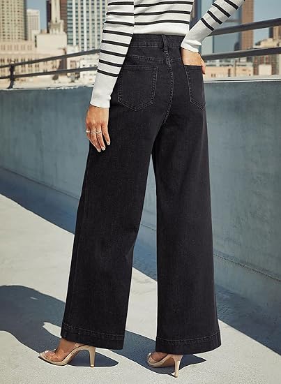 - Match: These womens jeans blend structure and sophistication, thanks to their high-rise fit and wide-leg silhouette. Women’s jeans can be well matched with tops, shirts, vest, blouses, sweatshirts, sweaters and cardigans for a casual and stylish look, comfortable to wear in spring, summer, autumn and winter.